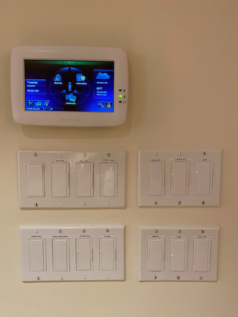 I had our electrician install 3 RadioRA 2 dimmers to control the track lights in our home theater. After I programmed them to the hub, and activated the Lutron Alexa skill, I could say “Alexa, turn on dim” and three tracks smoothly glowed on, in perfect sync, together. I was hooked. So was Kate, who didn’t have to squint at a bank of dimmers to figure out which buttons to press to turn on the lights.